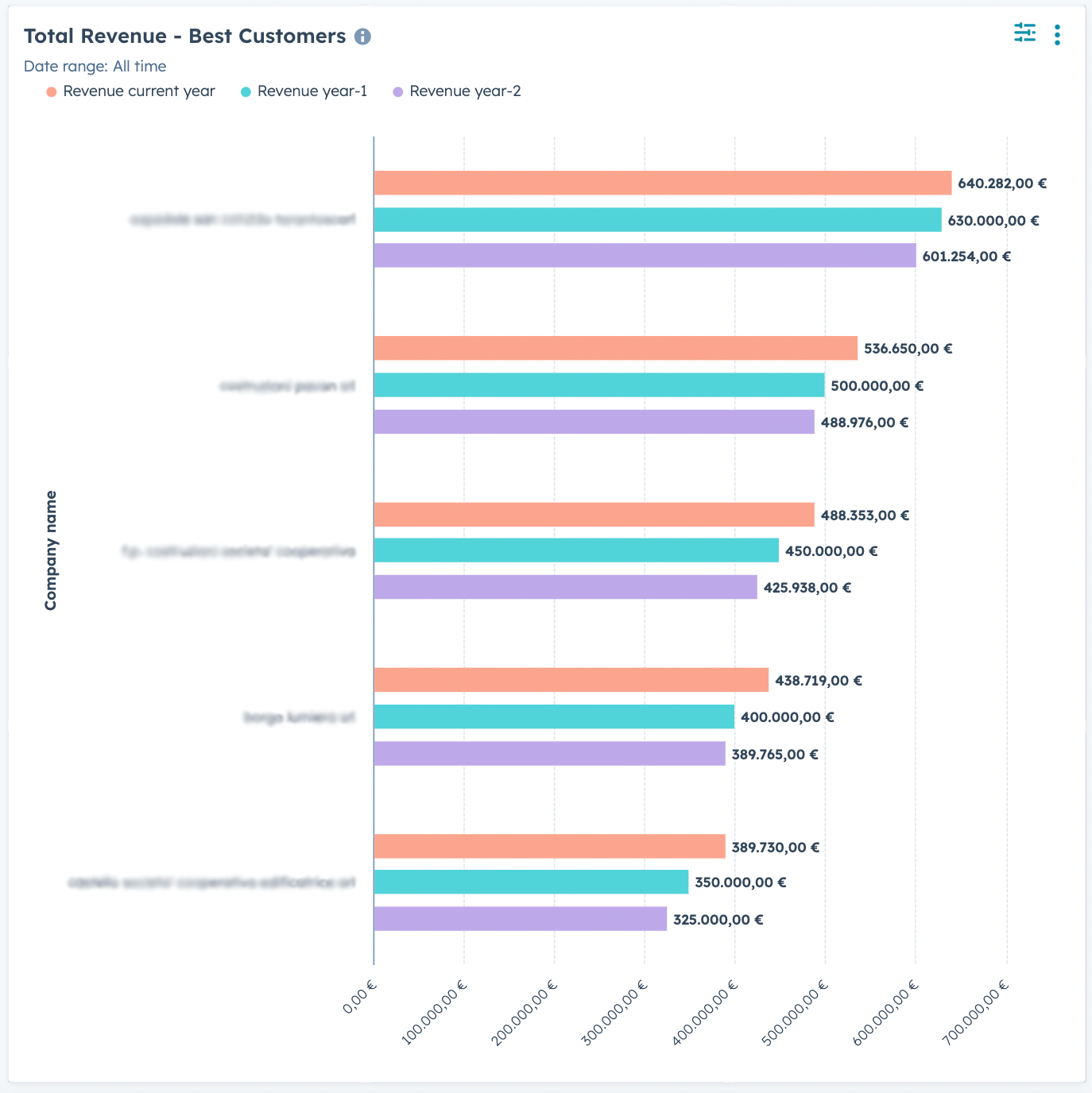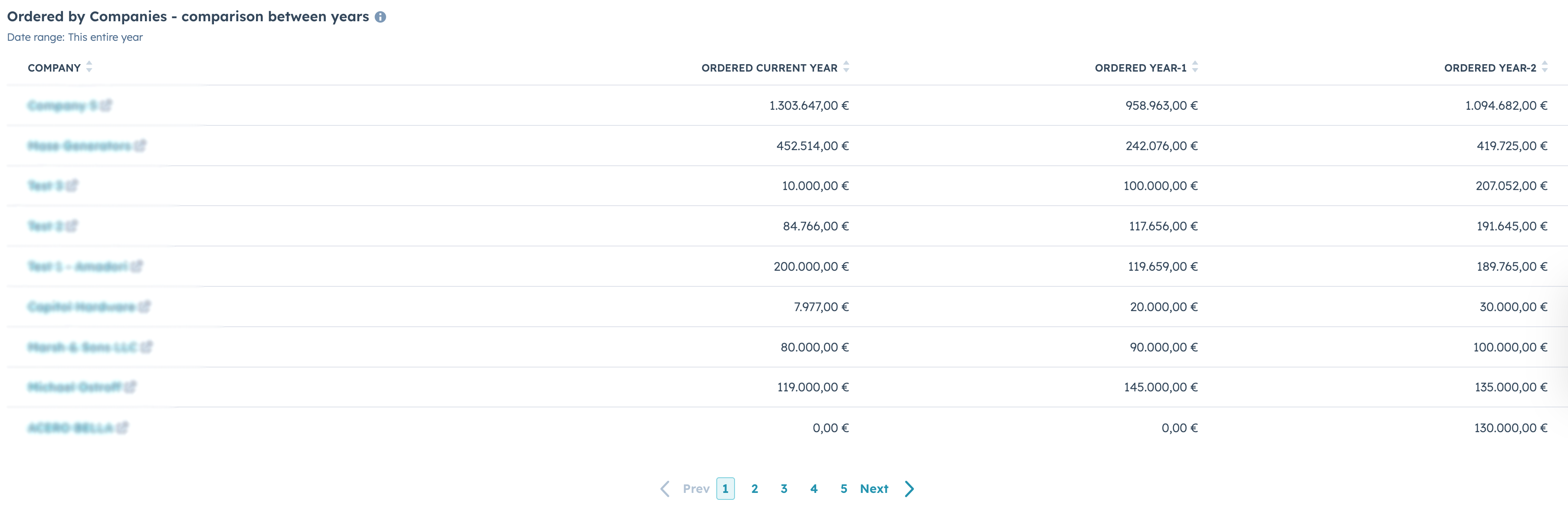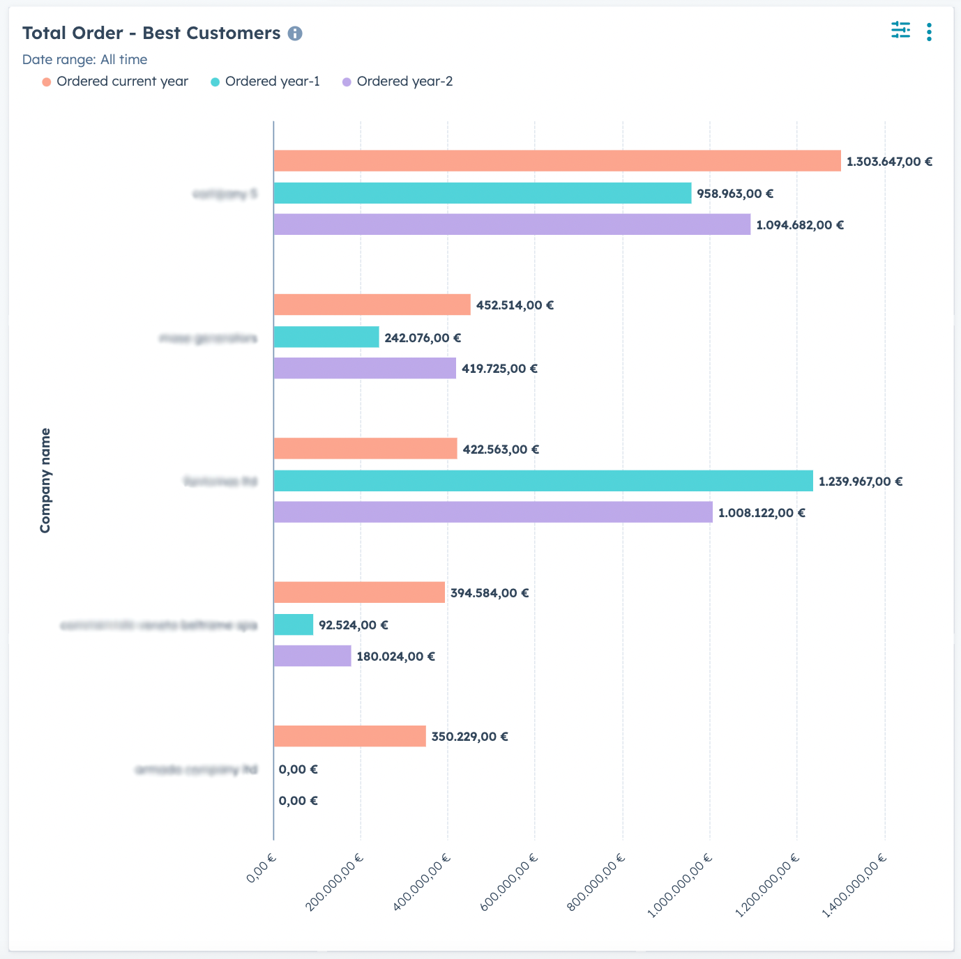 Thanks to HubSpot data integration you can now create custom dashboard and reports. For example, we recommend analysis with data of current and previous orders for each company.