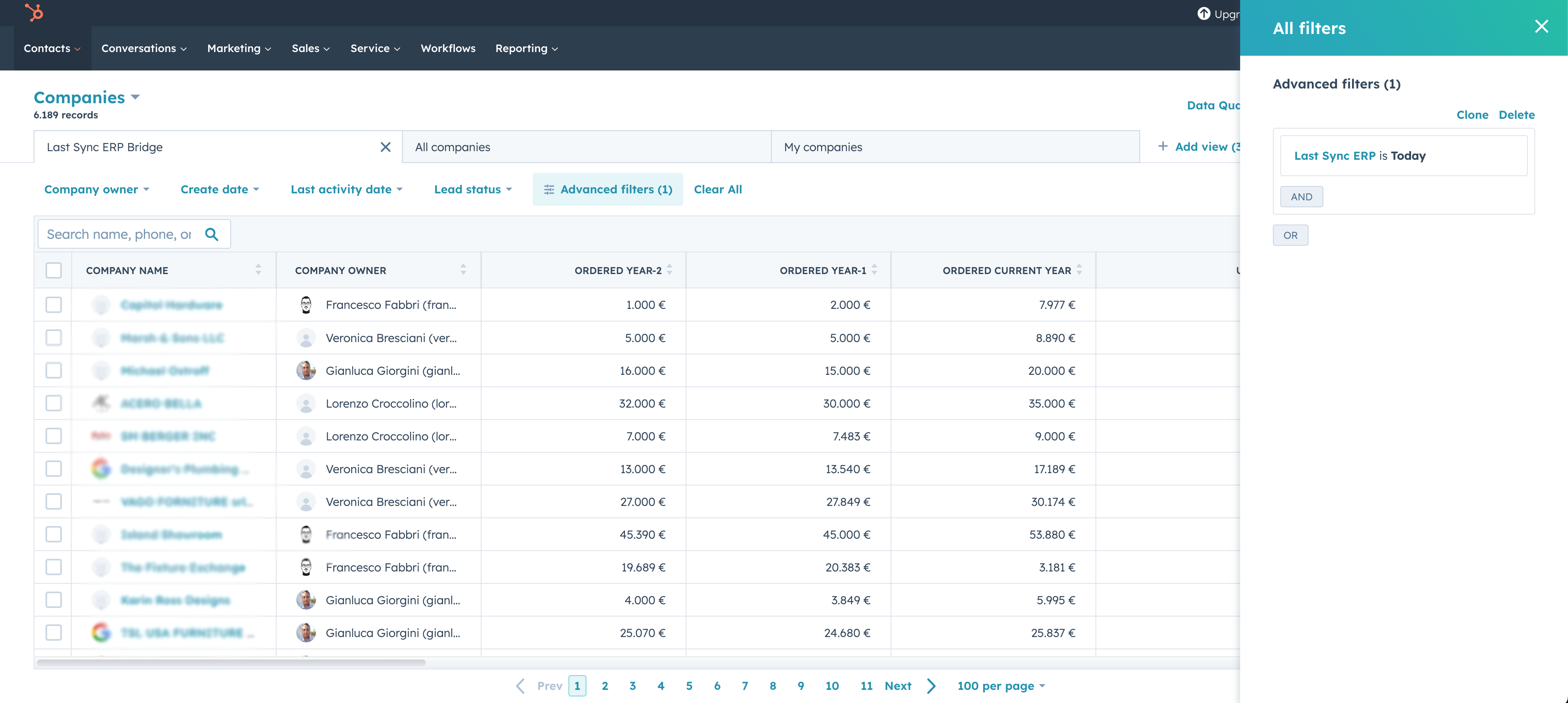 * Records that correspond to Veronica Bresciani on ERP, on HubSpot will be assigned to Veronica Bresciani,